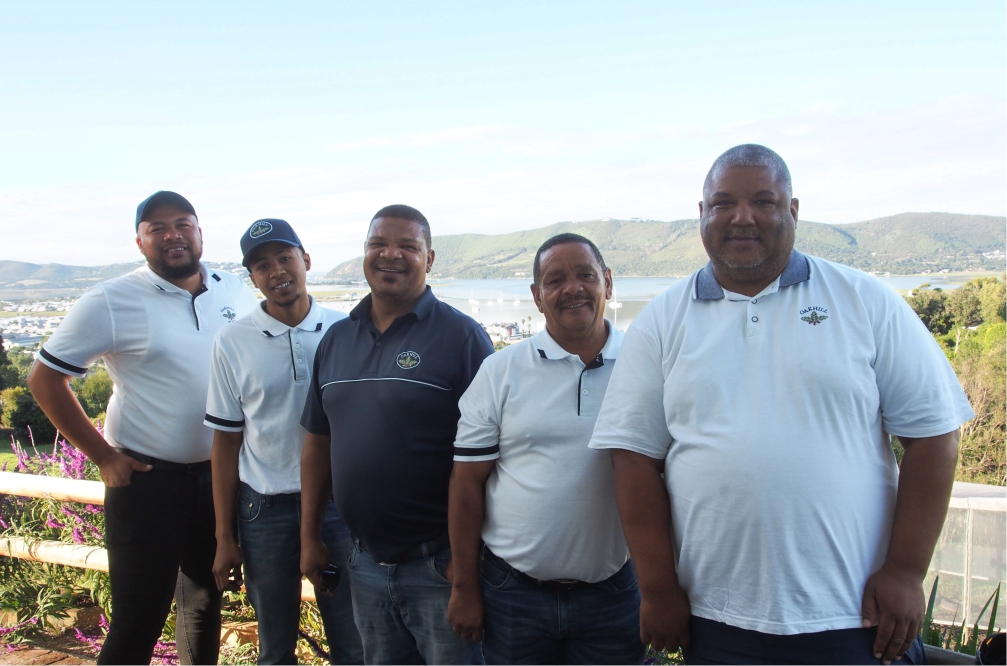 The caring transport team members are from left: Fabian Petersen, Jared Thomas, Claemont Titus, Elvin McCallum and Clive Rossouw.
