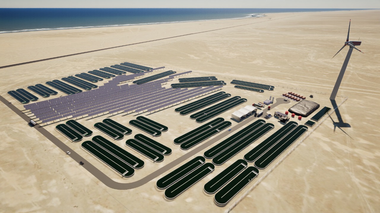 A rendering of SeaH4's pilot facility where they plan to break ground next year in Namibia, called SKORPIo.