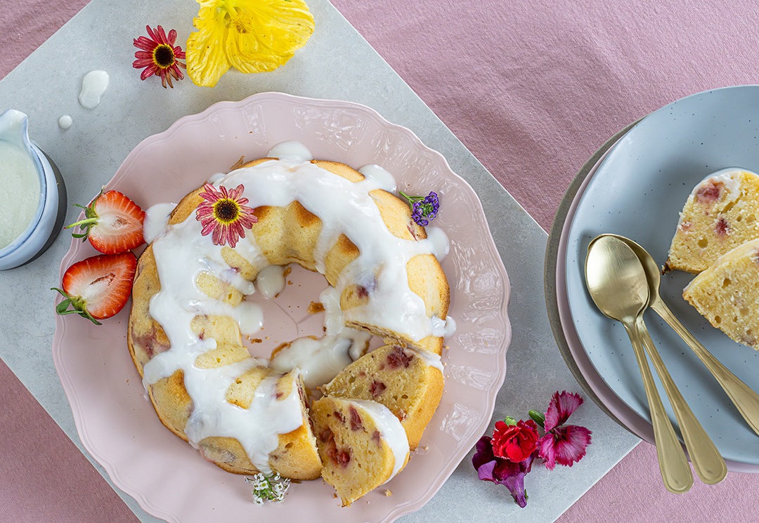 Yoghurt & strawberry bundt cake. Photos: Supplied