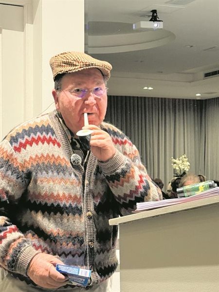 It was Swimmer's second presentation at the VPHS and also his 87th birthday, which was celebrated in style with a sauvage (champagne cork popping) by Beacon Isle food and beverage manager Justin Sewpershad.