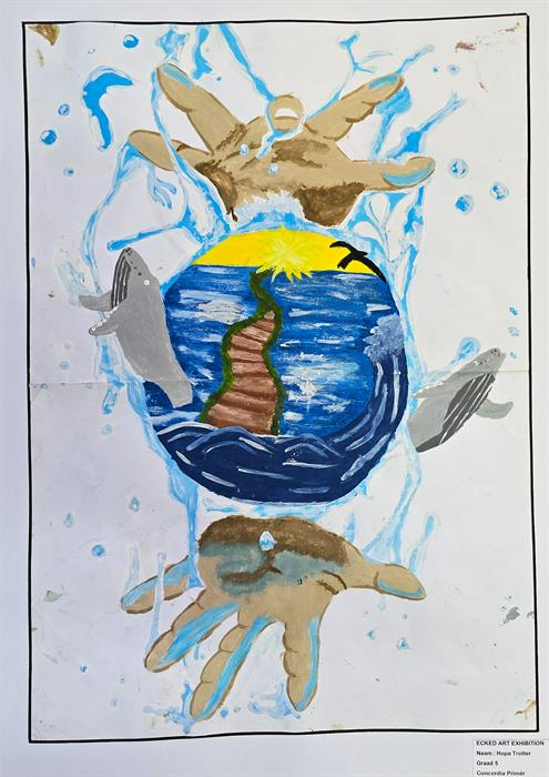 In the Intermediate & Senior Phase category, Grade 5 learner Hope Trotter also took top honours with her striking piece Hands off our ocean.