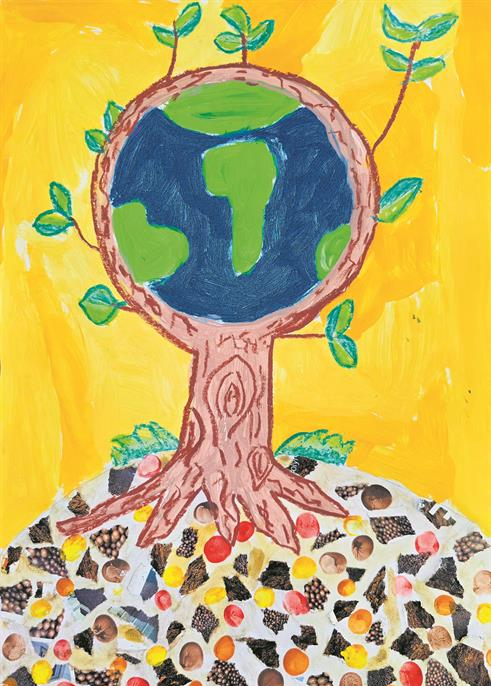Grade 2 learner Irah Moos' art piece titled Rooted in nature, growing together.