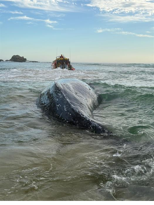 “Our NSRI Plettenberg Bay crew responded to our NSRI Plettenberg Bay station 14 rescue base while additional NSRI crew responded to the land side at Robberg to hike to the scene. Our NSRI rescue craft Ray Farnham Rescuer, Eric Stratford and Courtenays Rescuer were launched while additional NSRI crew, Cape Nature rangers and members of the Plettenberg Bay Marine Animal stranding Network responded. On arrival on the scene the approximately 7 meter juvenile Humpback whale was found beaching in shallow surf," Kruger said.