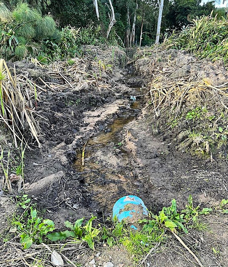 Overflowing sewage and temporary pipe fixes visible down the walk on the estuary. Photo: Supplied