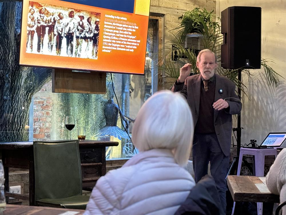 Mike Kantey gives a talk on the Griqua people at the Van Plettenberg Historical Society’s meeting at Emily Moon’s on Thursday 19 September.