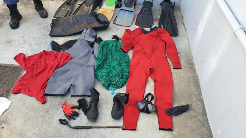 Diving equipment was confiscated and their lead led to nearby township (KwaNokuthula). Earlier in the day, eight sets of diving equipment were found by rangers patrolling yesterday morning.