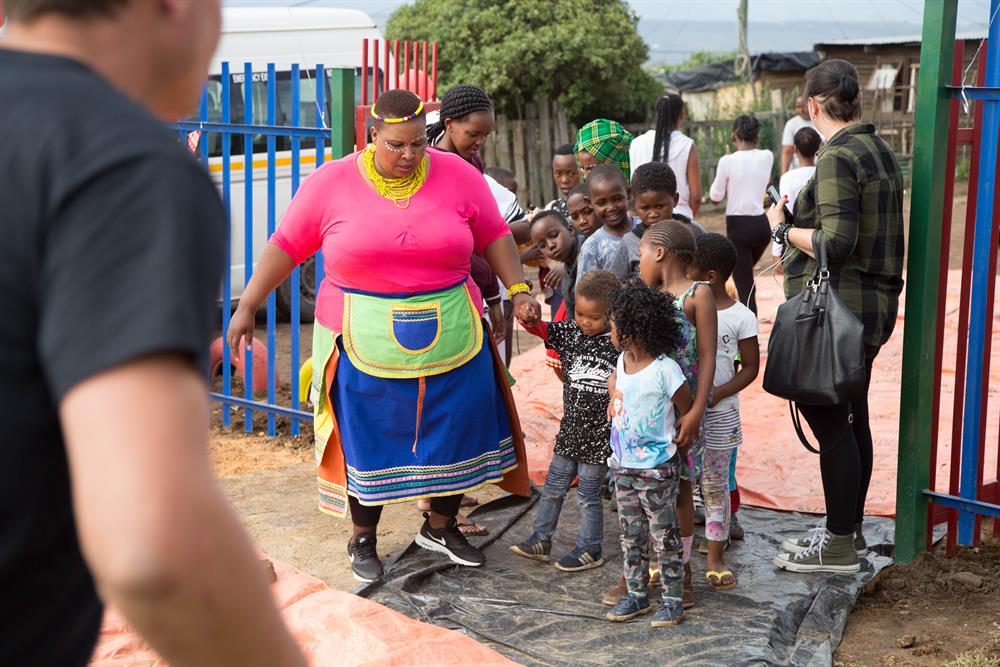 Thandiswa Gqukani, who runs a crèche in one of Plettenberg Bay's most impoverished communities, proudly leads the little learners to their newly constructed learning environment in Bossiesgif on Friday 2 March. Photos: Yolandé Stander