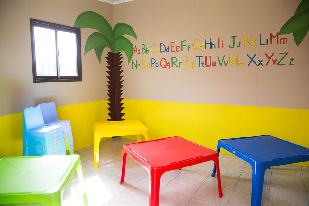 The crèche now boasts four beautifully decorated classrooms, bathrooms, a “hall”, a kitchen area and fully equipped playground with a jungle gym, slides, a sandpit, swings and push bikes.