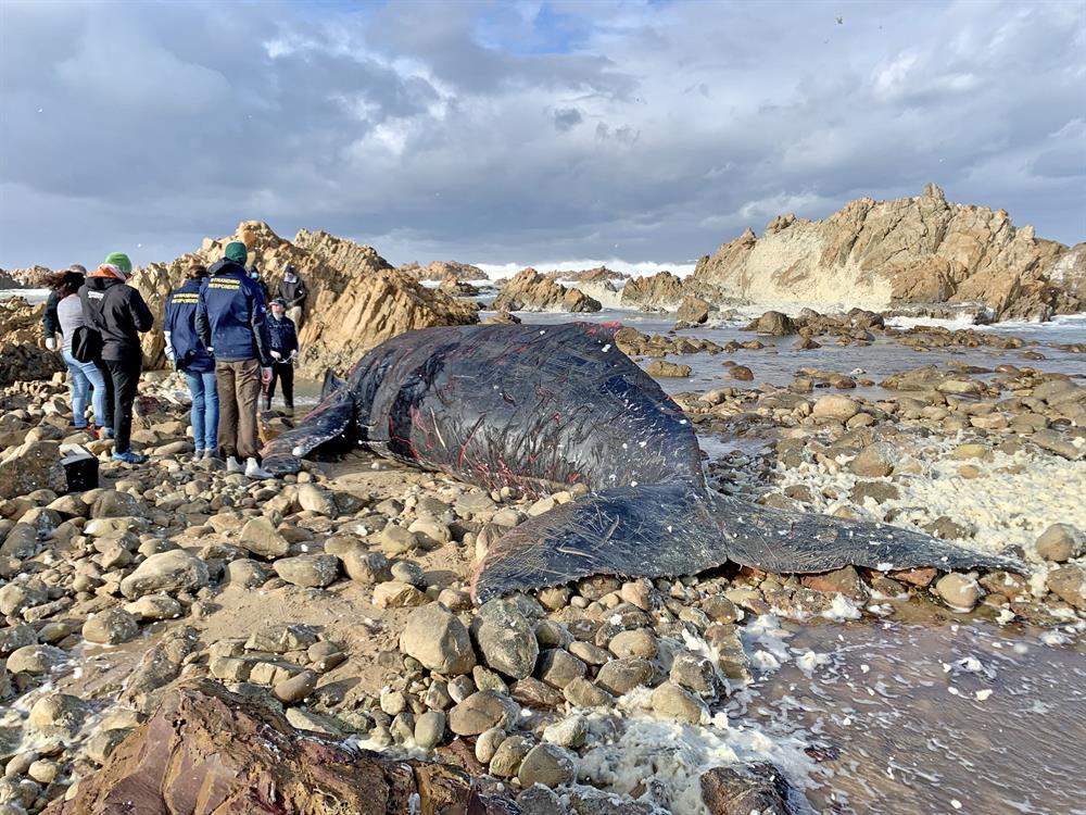 She further noted that a whale carcass can take a few months to decompose, but that with the sea conditions expected in the week or two to come, the process could be helped somewhat. "The conditions should see the water beat the carcass hard, and hopefully break it up into chunks as it decomposes, making it easier for the carcass to wash out to sea eventually."