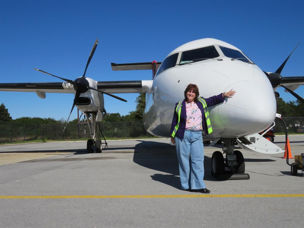 Esmaralda Barnes, outgoing Plett Airport manager, alongside a CemAir aircraft when the airline still used the Plett Airport.