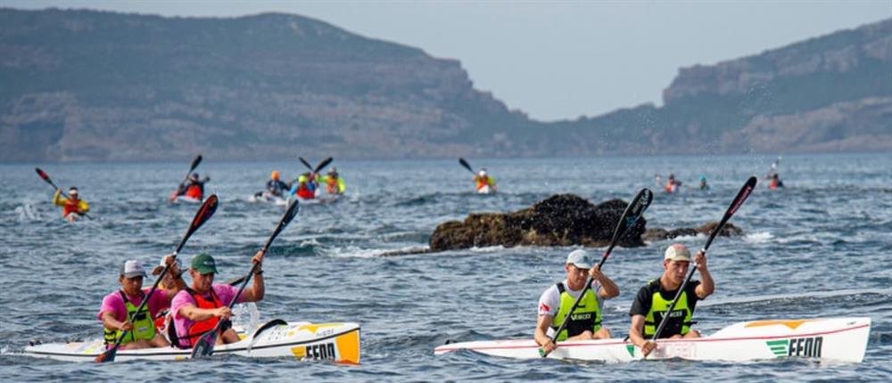 Participating in the Sabrina Love Summer Challenge surfski race.