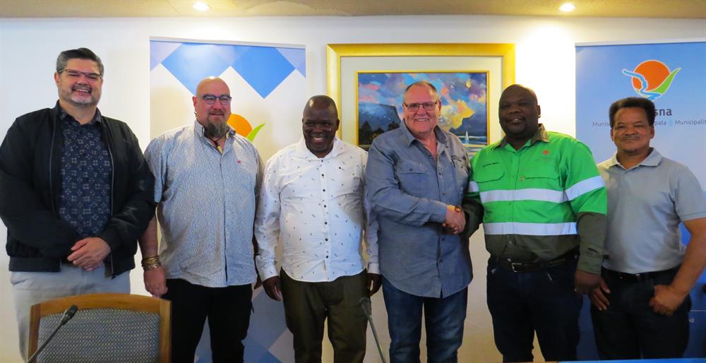 MUST From left are Peter Westcott (KIG), Pierre van Biljon (KIG), Municipal Manager Lulamiile Mapholoba, founder and owner KIG Eugene Vermaak, Mayor Thando Matika and chairperson of the Infrastructure Services committee Russel Arends. Photo: Rozano Alie