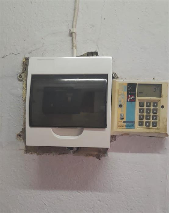 'n Inwoner van Piramidestraat, Hornlee, moes onlangs 'n nuwe elektriese boks uit haar eie sak aankoop en installeer nadat haar vorige boks aan die brand geslaan het.