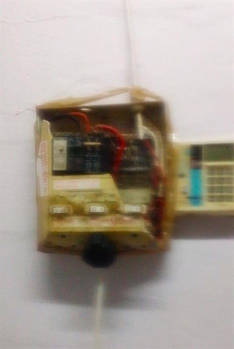 Die gebrande en beskadigde elektriese boks voor dit vervang is.