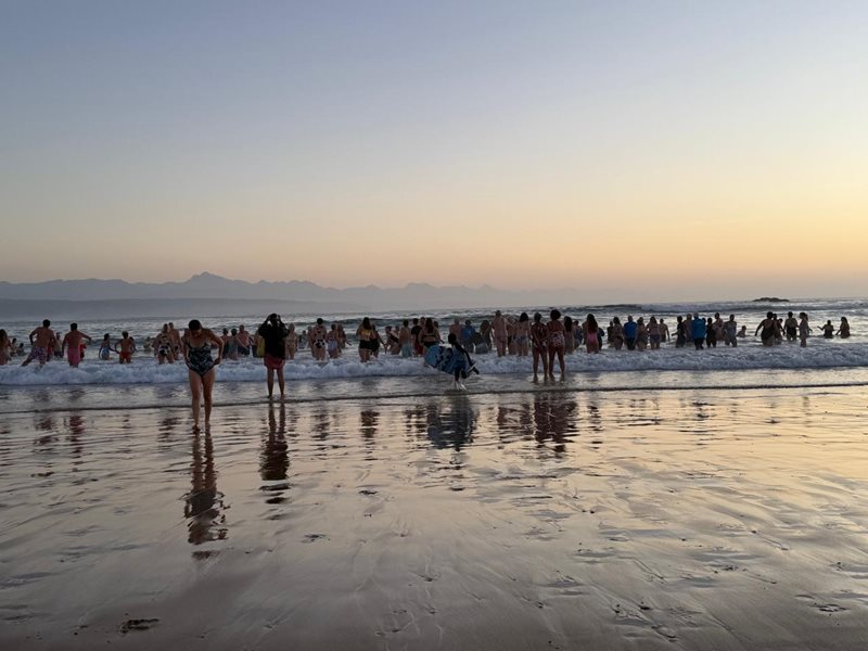 PLETTENBERG BAY NEWS - About 120 early morning dippers frolicked in the sea at Central Beach, Plett, at 05:00 today 1 December - part of the Sunrise Dippers that take to the ocean on the first of every month.