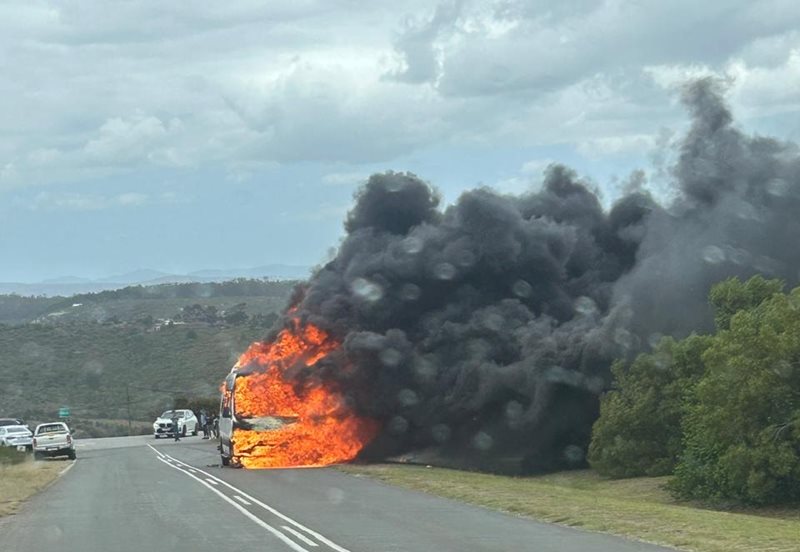 PLETTENBERG BAY NEWS - A small tour bus with nine American tourists on board, caught alight near the Airport Road/ Robberg Road t-junction on Sunday, 18 January at about 10:40.