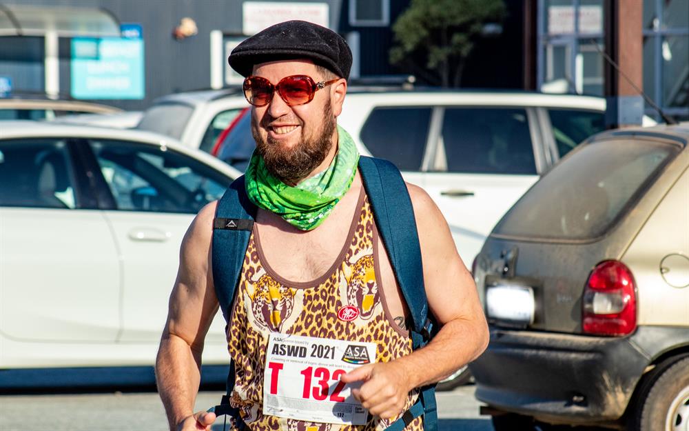 Gerrit Giliomee was dressed in a funky get-up for his run. Photos: Blake Linder